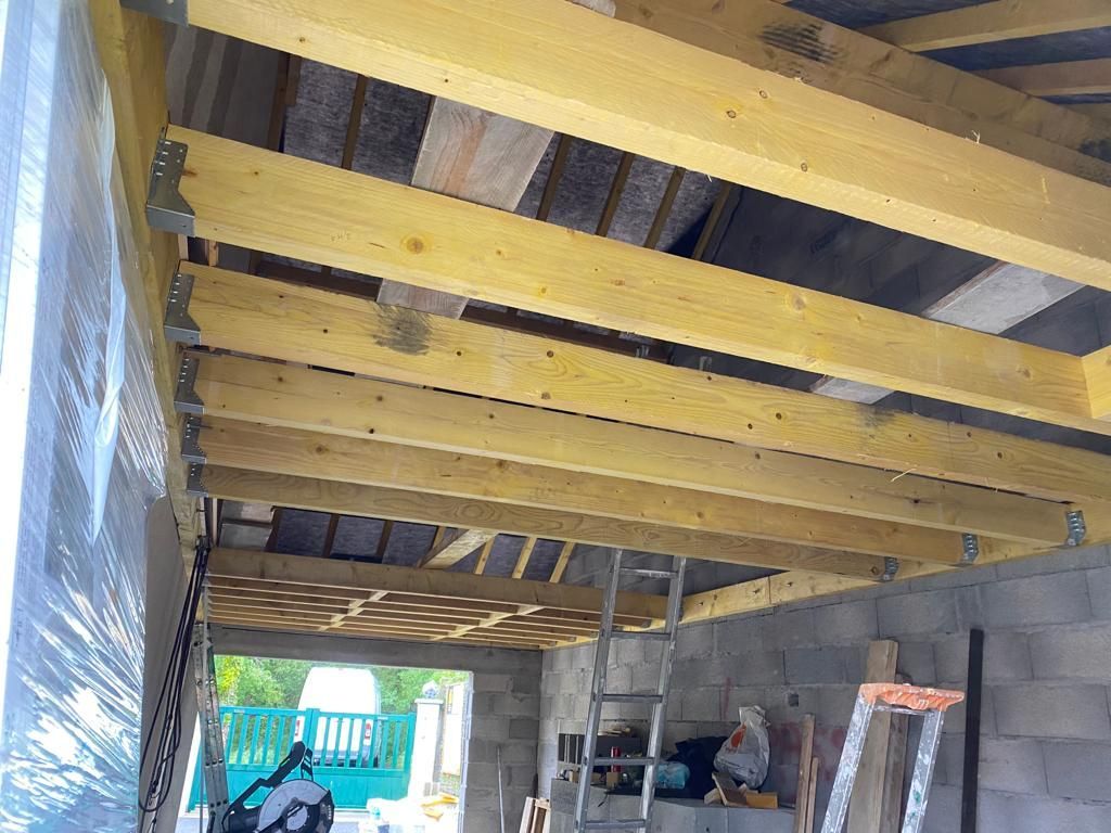 Pose d'une charpente avec armature en béton armée et ses tuiles
